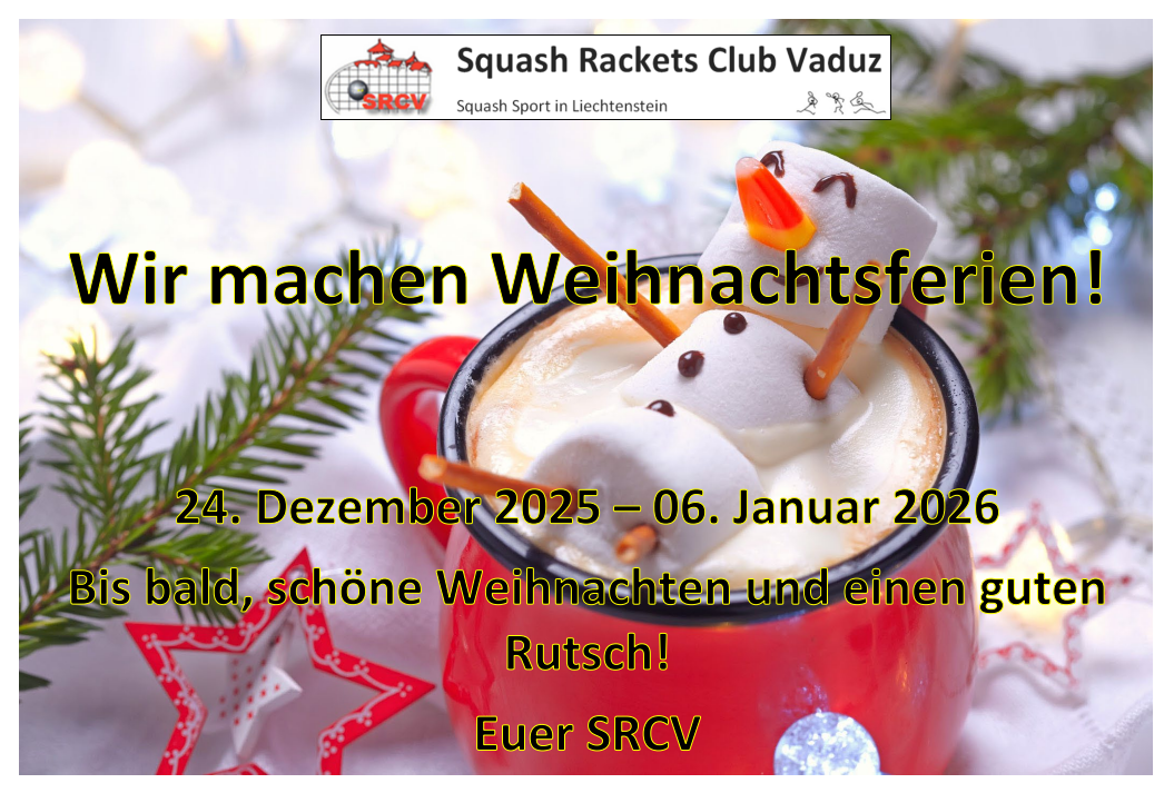 Das Squashhouse hat vom 24.12.2025 bis am 06.01.2026 geschlossen. Wir wünschen euch frohe Festtage und einen guten Rutsch ins neue Jahr.